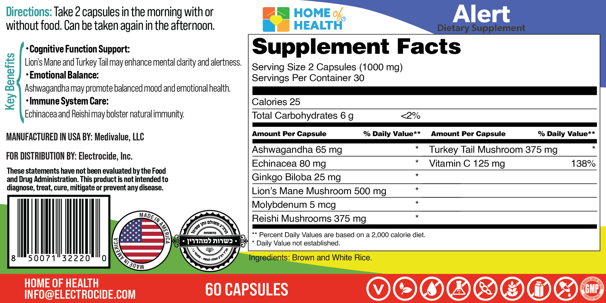 Imagine starting your day with a gentle nudge from nature, helping you feel more focused and ready to tackle whatever comes your way. That's the essence of Alert, a thoughtfully crafted, plant-based supplement blending powerful mushrooms and herbs to support your mental sharpness and overall vibe. Perfect for busy folks juggling work, family, or that endless to-do list. Alert draws on time-tested ingredients like Lion's Mane for cognitive vibes and Ashwagandha to keep your mood steady amid the chaos. Curious about how it works? Lion's Mane, for instance, is like a brain's best friend, known for nurturing nerve health, while Turkey Tail adds a layer of natural defense support. With immune-friendly additions such as Echinacea and Reishi, this hypoallergenic formula (free from gluten, soy, dairy, and GMOs) is made right here in the USA. Whether you're a wellness newbie eager to learn or a pro seeking that extra edge, Alert invites you to explore natural ways to enhance clarity, balance, and vitality. Feel empowered as you discover how these elements team up for your daily wins... because who doesn't love a little brain boost from Mother Nature?