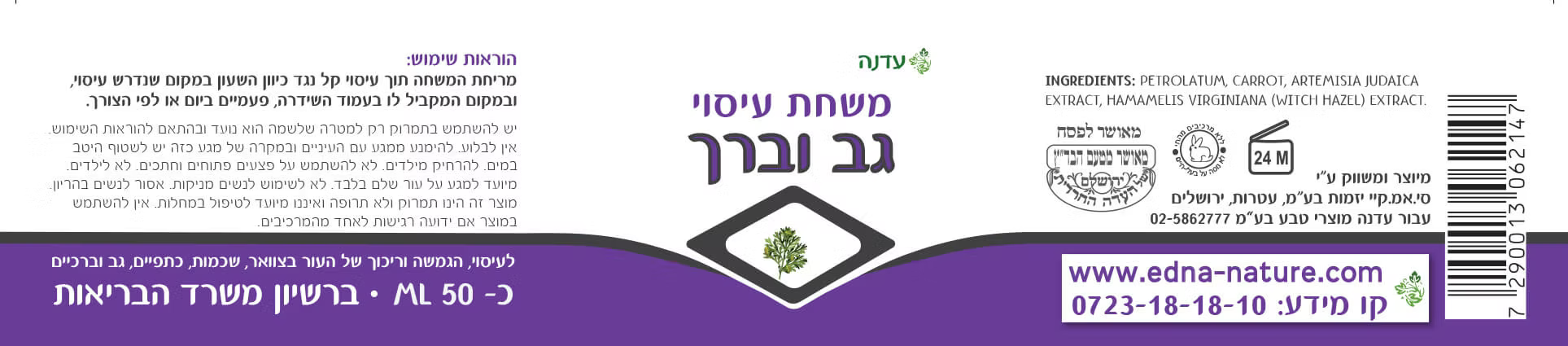 Experience natural support for joint and muscle comfort with Edna's Back & Knee Massage Cream. This plant-based topical formula harnesses the antioxidant-rich power of traditional desert herbs like Judea Wormwood (Artemisia Judaica) and Carrot Extract to promote soothing warmth and overall wellness. It’s crafted for those seeking gentle, botanical assistance in maintaining daily mobility and recovery.