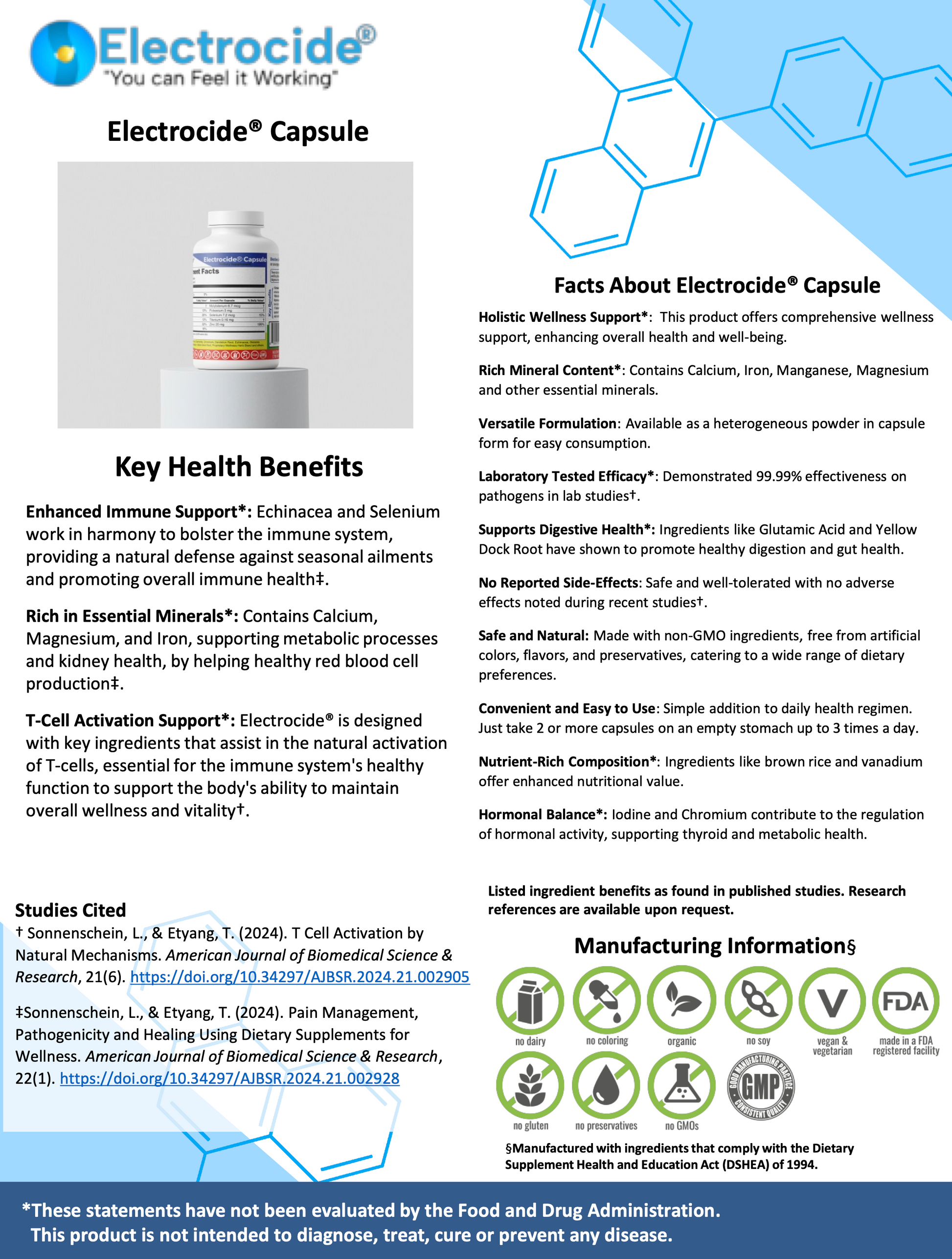 Electrocide Capsule stands as a versatile powerhouse, ready to step in when you need strong support for your body's natural equilibrium and resilience. We formulated this plant-based blend with herbs and minerals like echinacea and selenium to aid immune harmony, alongside calcium and iron for metabolic aid and red blood cell function. It's ideal for those moments when you want a comprehensive boost, with magnesium contributing to muscle and nerve roles, and chromium helping with glucose management. True wellness involves adaptability, and dandelion root supports detox processes while parsley assists fluid balance. Check out these insights: horsetail delivers silica for tissue integrity, and vanadium aids energy regulation. Hypoallergenic, free from common allergens, and produced in the USA, Electrocide Capsule offers a reliable option for targeted use. Whether addressing occasional needs or seeking balance, it's a supplement that's potent and practical whenever called upon.