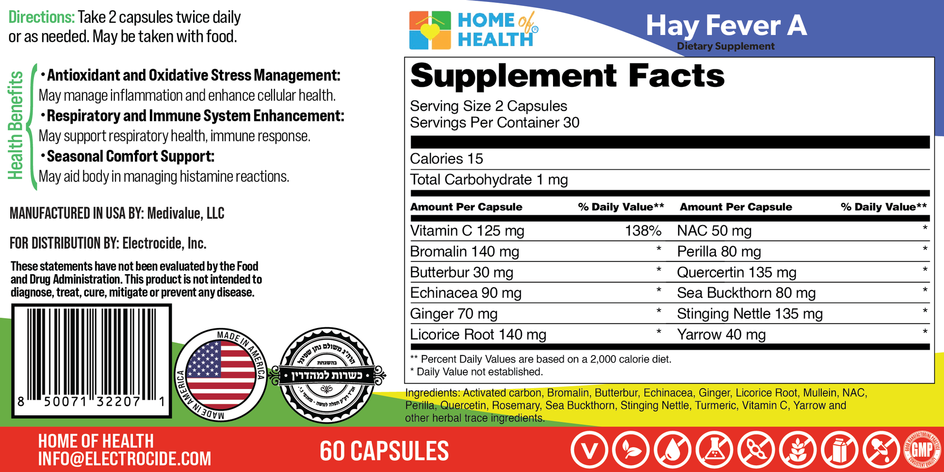 - Stinging Nettle (Urtica dioica L): Herb for histamine support, included for seasonal aid.