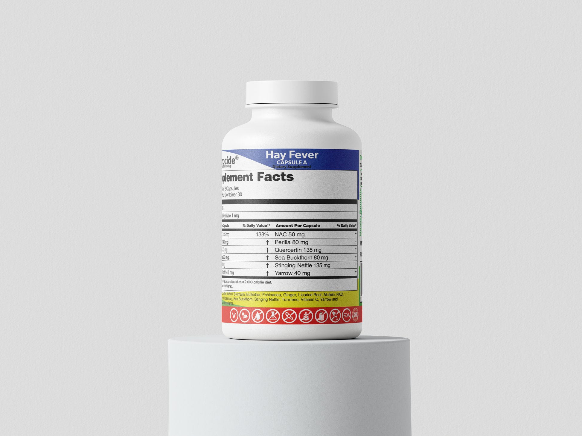 - Quercetin: Flavonoid antioxidant, included to stabilize mast cells.