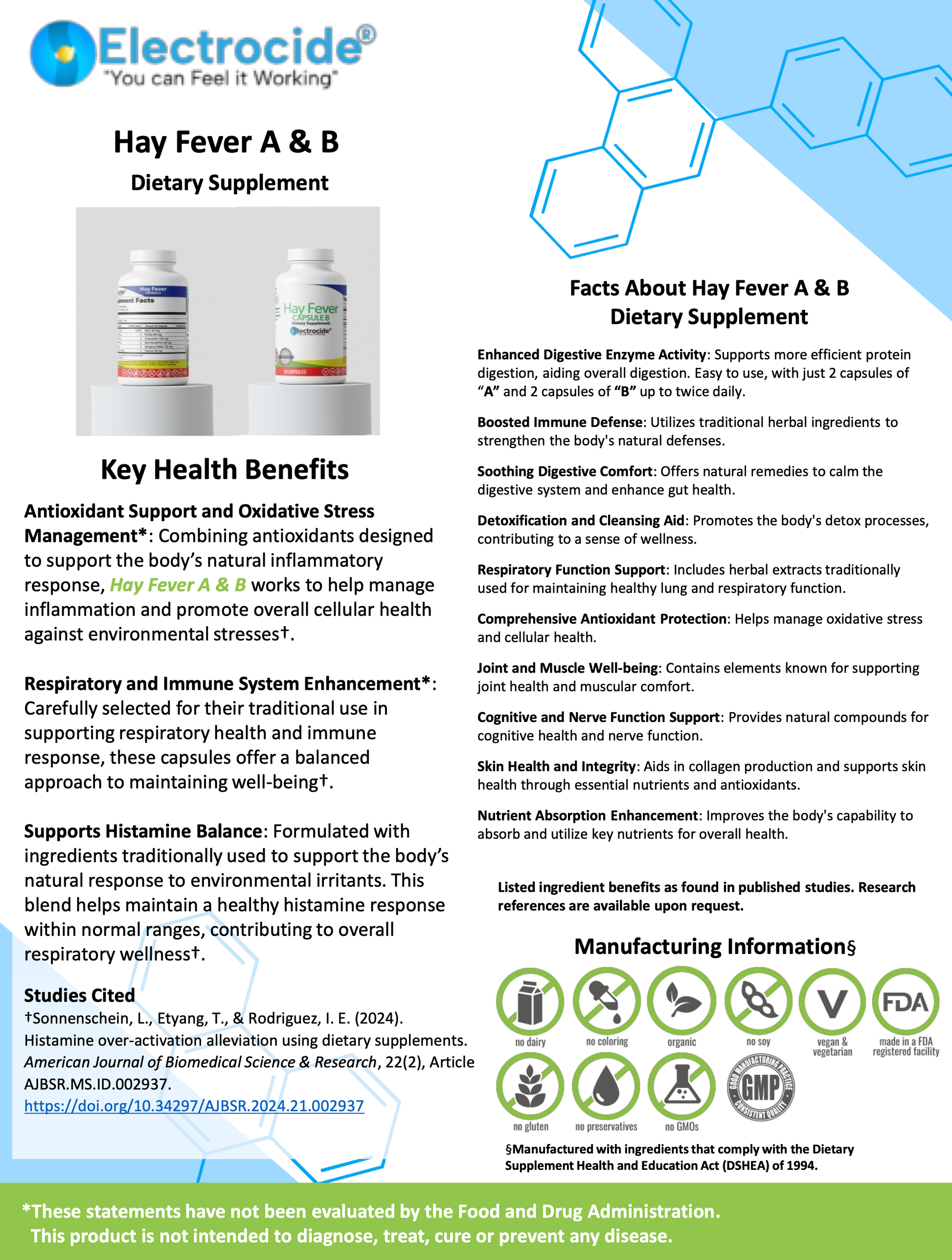 These statements have not been evaluated by the Food and Drug Administration. This product is not intended to diagnose, treat, cure, or prevent any disease.