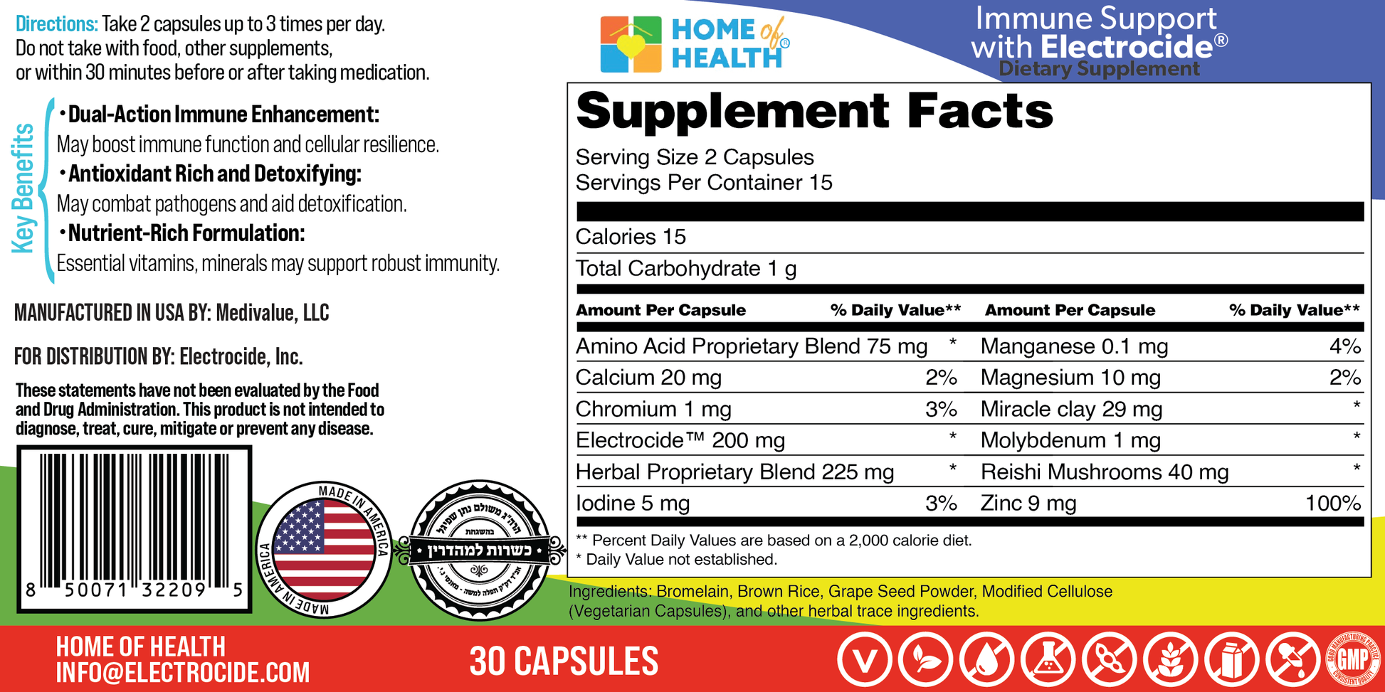 Immune Support with Electrocide highlights our signature Electrocide blend, a unique combination of minerals and herbs to aid in natural resilience and balance when you need it most. We positioned this plant-based formula as a targeted option for occasional use, leveraging its mineral synergy, including chromium, iodine, and molybdenum, to contribute to metabolic processes and energy harmony during cleanse periods. To strengthen its impact, we integrated reishi mushrooms for immune support and grape seed powder for antioxidant contributions, creating an effective tool for periodic wellness. Studies on comparable formulations suggest benefits for vitality, with Electrocide's distinct makeup offering a base for equilibrium and renewal. The body and cleanse processes interconnect, with magnesium supporting enzymatic functions and zinc aiding protein synthesis. Hypoallergenic, free from common allergens, and made in the USA, Immune Support with Electrocide enables you to harness this institute-developed blend for focused refreshment. Ready to activate your body's natural capabilities as needed?