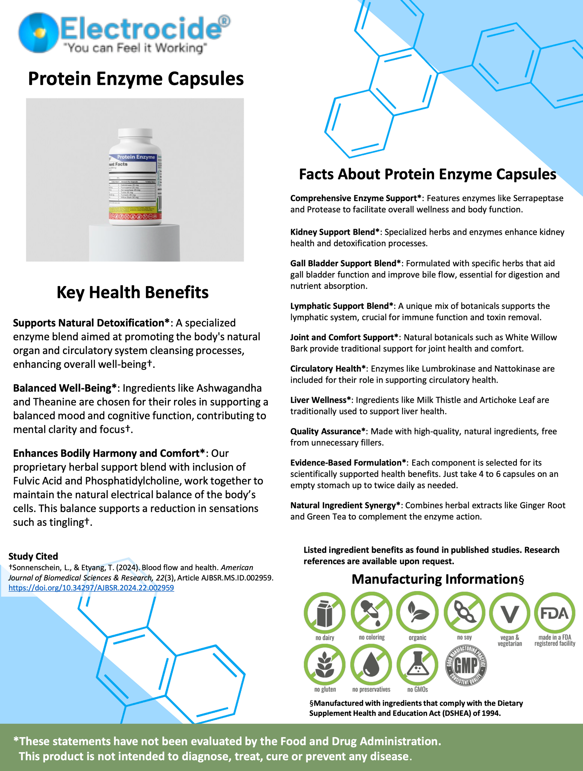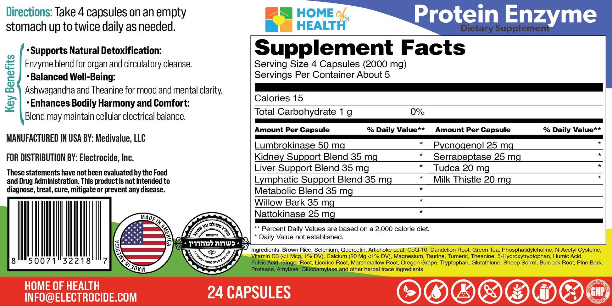 Protein Enzyme is your natural partner for internal harmony, featuring a blend of enzymes and herbs to support detoxification and well-being in a convenient capsule. Designed for those seeking comprehensive organ and circulatory cleanse, this plant-based supplement includes lumbrokinase and nattokinase to facilitate body function, while serrapeptase aids in overall wellness. To enhance its scope, we incorporated kidney, liver, lymphatic, and metabolic support blends with Botanicals like milk thistle for liver health and pycnogenol for antioxidant power, making it a multifaceted tool for balanced nutrition. Organ health and detoxification are interconnected, with these ingredients synergizing to promote cellular electrical balance and comfort. A truly powerful detox. Hypoallergenic, free from unnecessary fillers, and made in the USA, Protein Enzyme empowers you to embrace a revitalized routine. Ready to feel the gentle cleanse from nature's essentials?