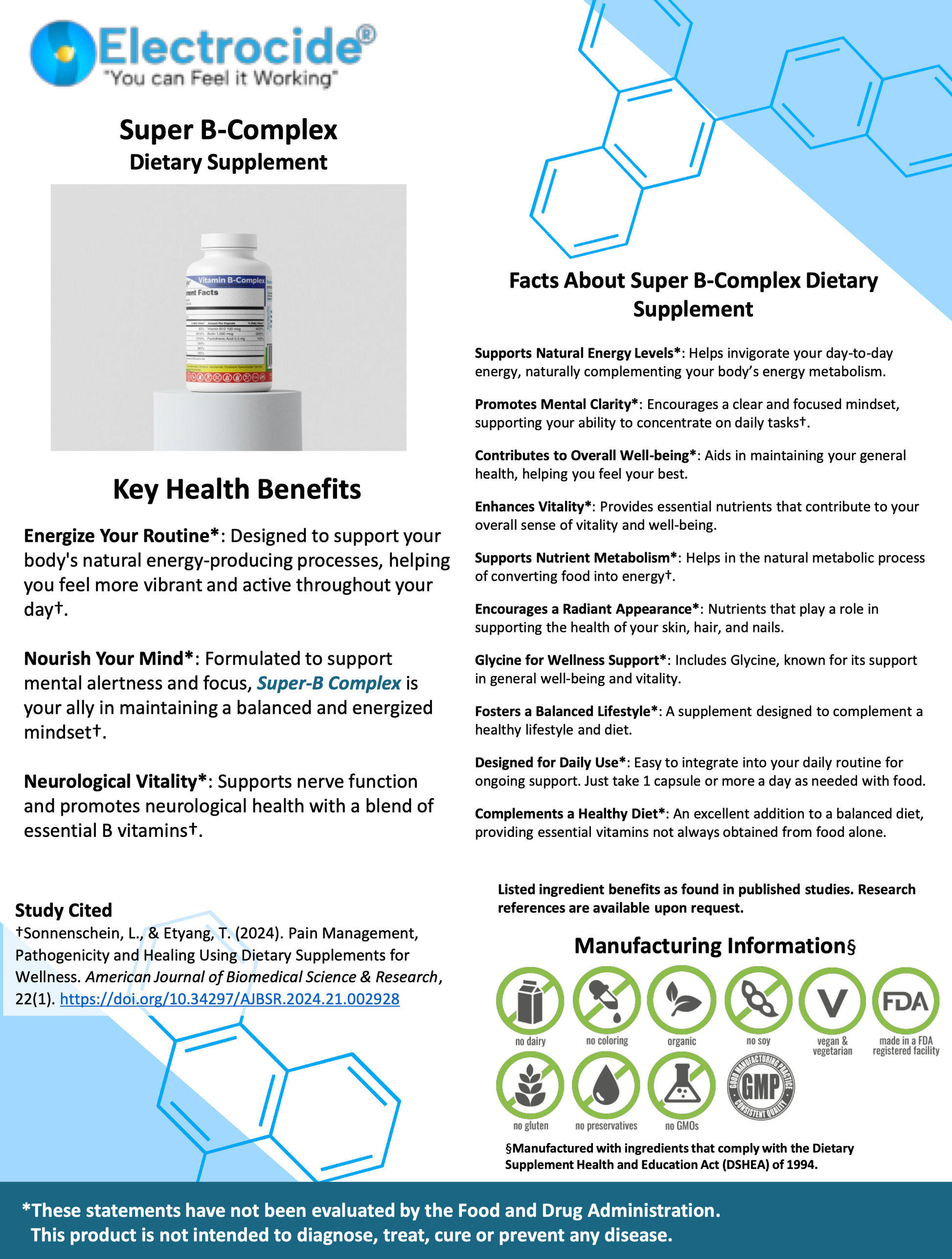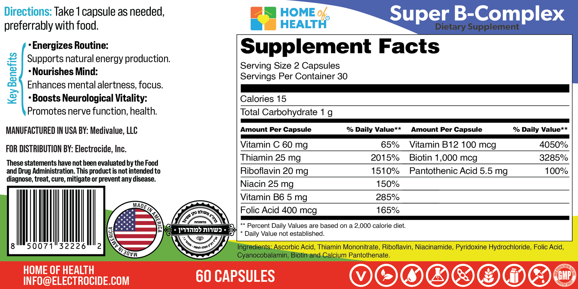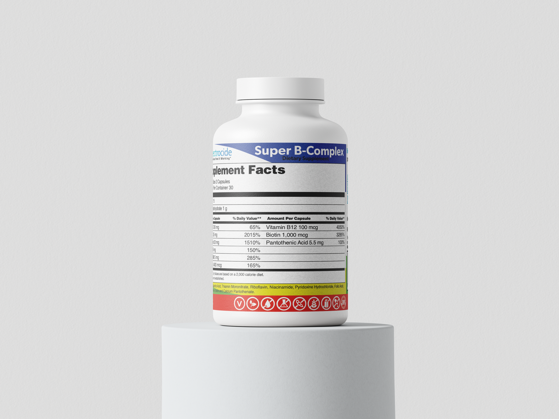 Super B-Complex is your daily energizer for vibrant living, delivering a full spectrum of B vitamins to support natural energy production and mental alertness in a simple capsule. We created this plant-based supplement for those seeking to nourish their mind and boost neurological vitality, with thiamin aiding carbohydrate metabolism for sustained focus and riboflavin contributing to cellular energy pathways. And to make it comprehensive, we included folate for cell division and biotin for fatty acid synthesis, making it an ideal choice for busy lifestyles needing balanced support. Energy and nerve function are interconnected, with these vitamins working together to promote overall wellness without stimulants. Explore the benefits: niacin supports DNA repair, while pantothenic acid aids coenzyme A formation for metabolic efficiency. Hypoallergenic, free from common allergens, and made in the USA, Super B-Complex empowers you to feel more vibrant and focused naturally. Ready to enhance your routine with essential nutrition?
